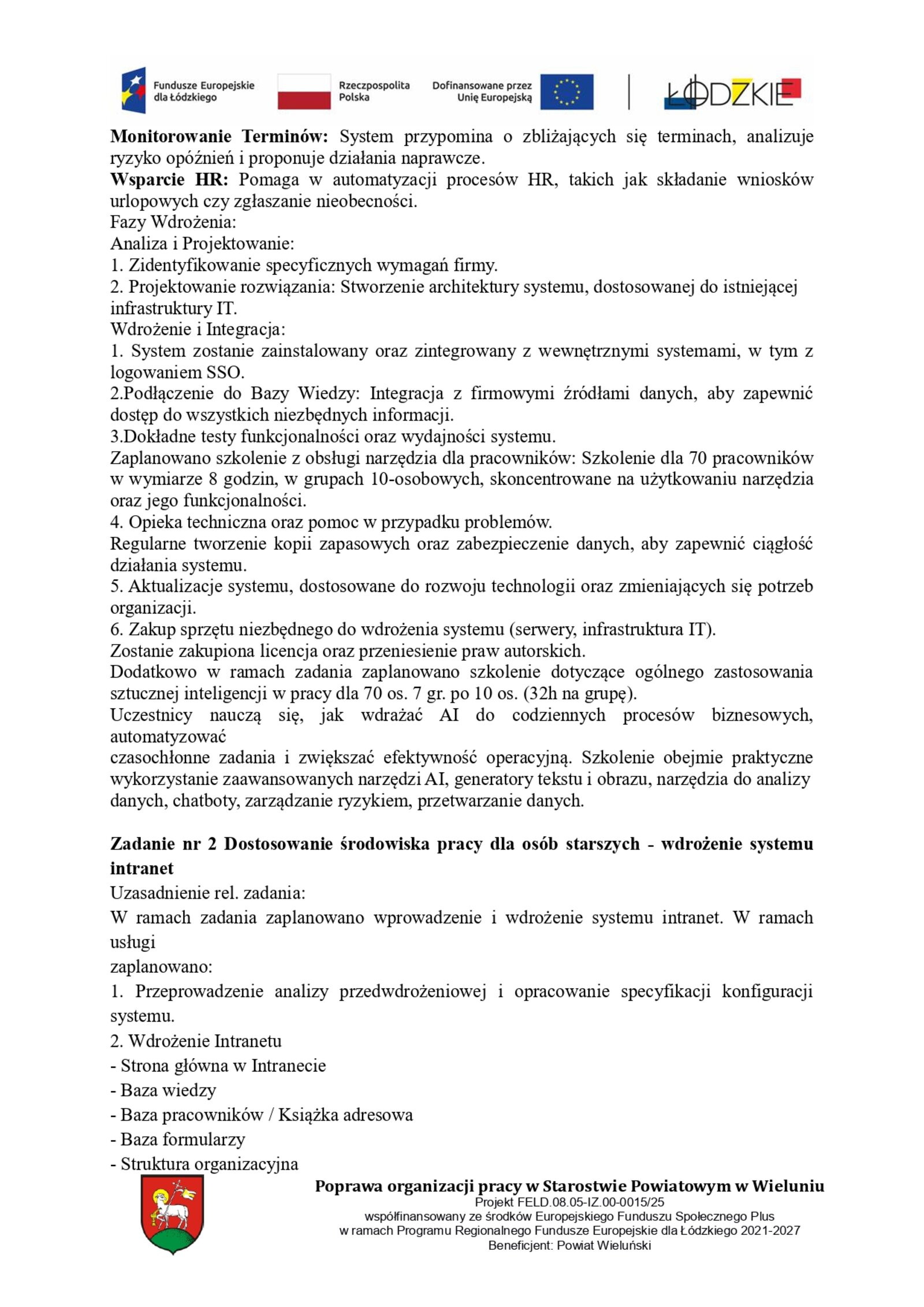 Zadanie nr 2 Dostosowanie środowiska pracy dla osób starszych - wdrożenie systemu intranet