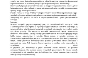 Pracownicy będą mogli pracować wymiennie na przygotowanych stanowiska pracy. Laptopy będą zakupione o odpowiednich wymaganych parametrach, aby wszystkie oprogramowania, systemy mogły działać prawidłowo.